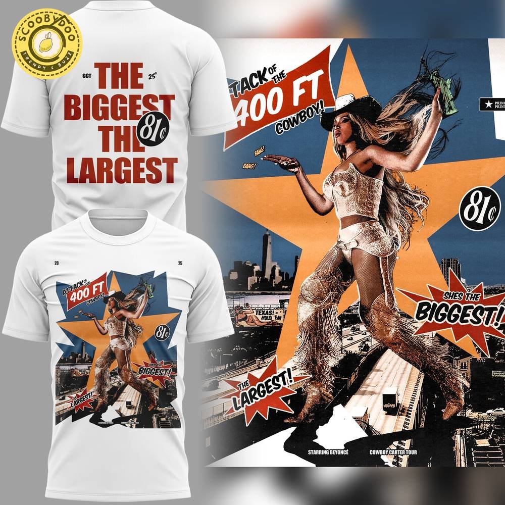 Introducing the “ATTACK OF THE 400FT COWBOY!” STARRING BEYONCÉ T-White SHIRT, a unique blend of pop culture and fashion. This statement tee celebrates creativity and boldness, making it perfect for fans of Beyoncé and lovers of unconventional style. Stand out in any crowd with this eye-catching shirt. Get your “ATTACK OF THE 400FT COWBOY!” STARRING BEYONCÉ T-White SHIRT today!