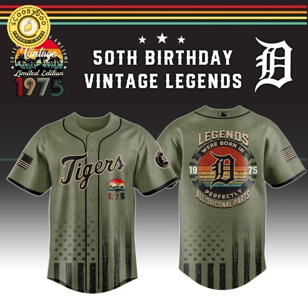 Detroit Tigers x 50th Birthday Vintage Legends Mashup Usa Design Baseball Jersey 1