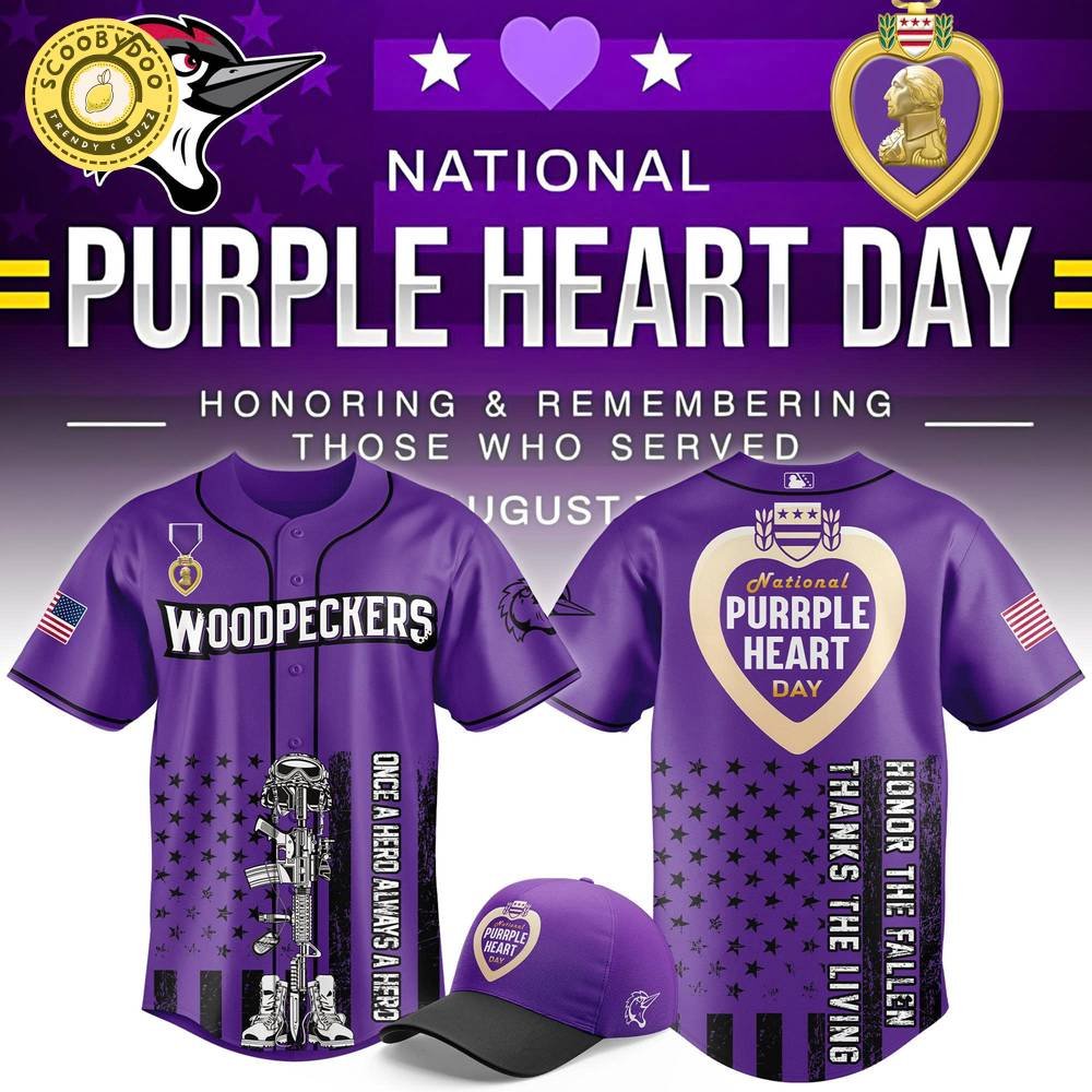 Fayetteville Woodpeckers x Purple Heart Day Baseball Jersey 1