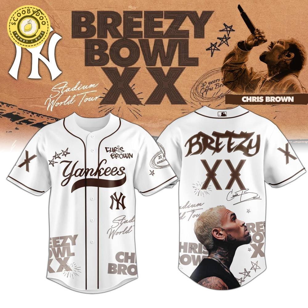 NY Yankees x Chris Brown Breezy Bowl XX World Tour 2025 Jersey Editions Limited White 1