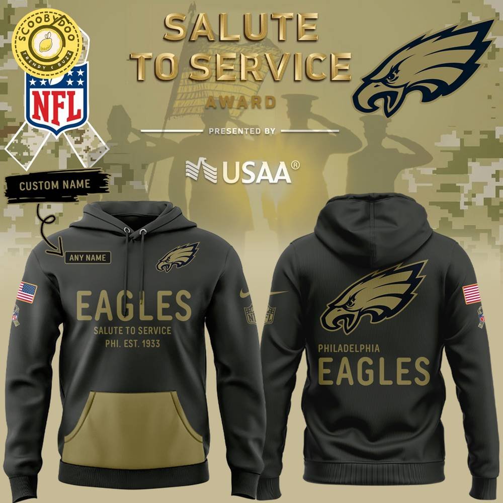 Philadelphia Eagles Salute to Service Sideline 2025 Hoodie Custom NAME 1
