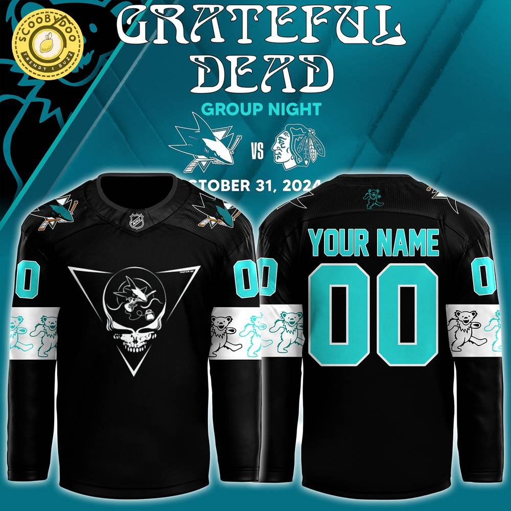 In the heart of Northern California, where the spirit of hockey and the echoes of rock ‘n’ roll converge, lies an exciting proposition for sports fans and music enthusiasts alike: the “San Jose Sharks x Grateful Dead Night 2024 Jersey – Custom Name & Number.” This limited-edition jersey is more than just a piece of apparel; it’s a symbolic fusion of two iconic institutions that have shaped American culture. As we look forward to 2024, this special edition jersey promises to capture the imagination and passion of both San Jose Sharks supporters and followers of The Grateful Dead. Let’s dive into what makes this collaborative creation a must-have item in any fan’s collection.