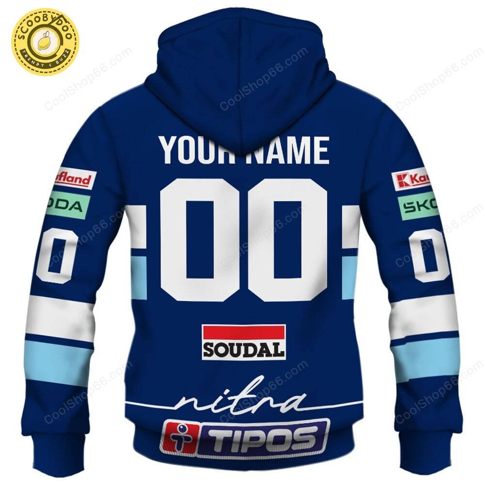 Introducing the Slovak Extraliga HK Nitra Jersey Style Hoodie: a perfect fusion of comfort, style, and sports pride. This hoodie is crafted for fans who want to showcase their love for their favorite hockey team while enjoying the cozy embrace of a premium garment. The concept behind this hoodie is simple yet compelling; it is designed to blend the iconic elements of a hockey jersey with the casual charm of a hoodie, making it an excellent addition to any fan’s wardrobe.