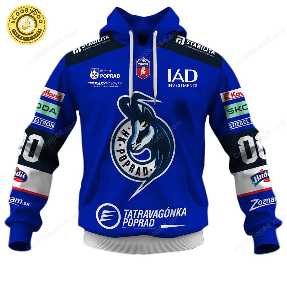 Introducing the Slovak Extraliga HK Poprad Jersey Style Hoodie, a stylish and comfortable piece of apparel that every hockey fan and style enthusiast should consider adding to their wardrobe. This unique hoodie combines the spirited essence of the Slovak Extraliga and the iconic imagery of HK Poprad, making it an ideal garment for both casual outings and spirited game nights.