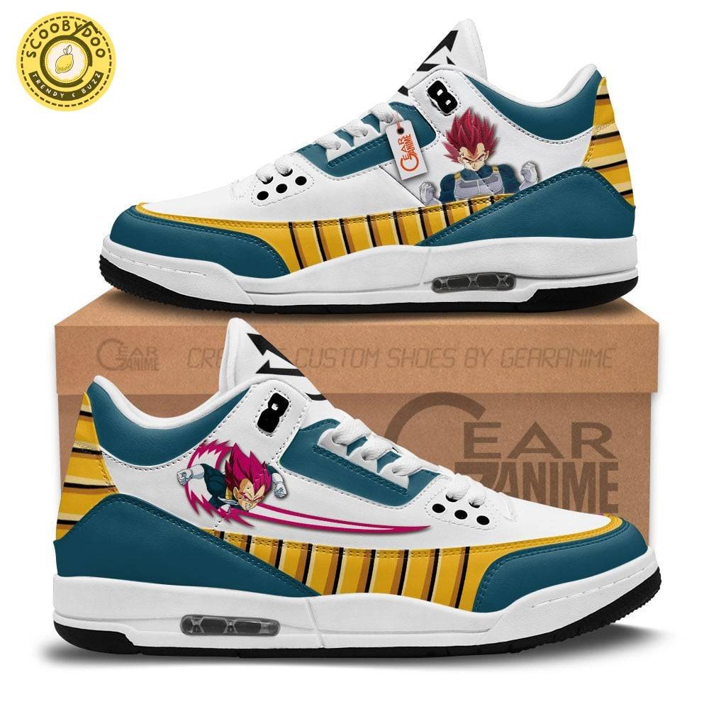 Introducing the Vegeta Super Saiyan God AJ3 Sneakers Custom Kicks Limited Edition, a sneaker that merges the worlds of high-fashion and anime in a stunning tribute to one of the most iconic figures in the Dragon Ball universe. Combining the classic silhouette of the Air Jordan 3 with elements inspired by the powerful Saiyan transformation, these custom kicks are designed for both sneakerheads and anime enthusiasts alike.
