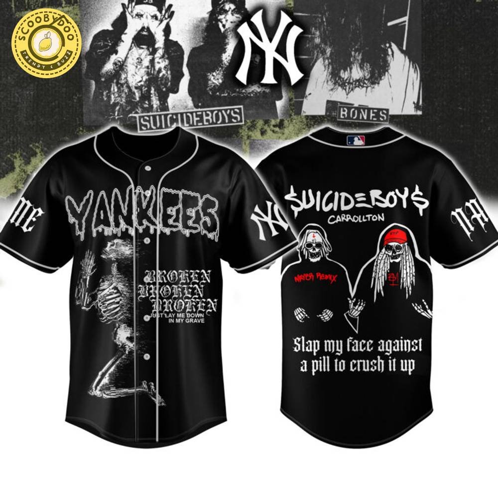 The Yankees x Suicideboys Broken Just Lay Me Down In My Grave Personalized Baseball Jersey is a unique fusion of two powerful cultural icons that resonate with fans across diverse backgrounds. At its core, this jersey represents not just a piece of clothing, but a statement of individuality, style, and passion for both hip-hop and baseball. The collaboration brings together the storied legacy of the New York Yankees, a symbol of excellence in sports, and the raw, evocative energy of the Suicideboys, a duo known for their impactful music that resonates deeply with their audience.